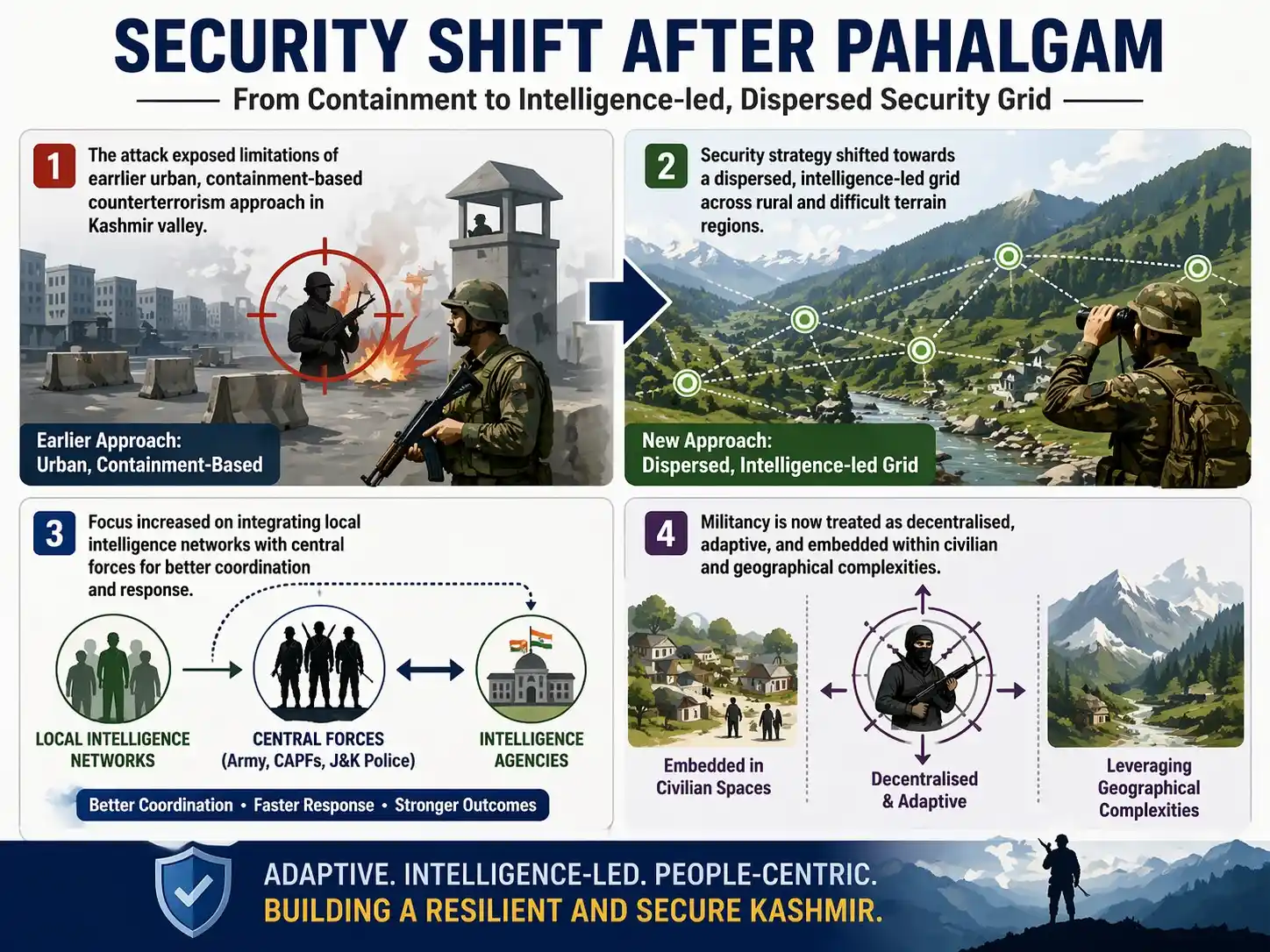 The Pahalgam attack has reshaped Kashmir’s security architecture, making it more adaptive, technology-driven, and intelligence-oriented. However, the persistence of economic distress and social unease highlights that lasting peace cannot be achieved through security measures alone. A comprehensive strategy that combines security with development, trust-building, and inclusive growth is essential to ensure long-term stability and resilience in the region.