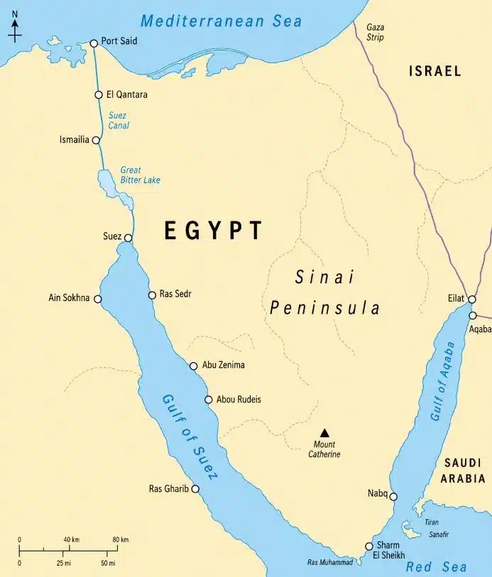 • The Sinai Peninsula connects Africa and Asia